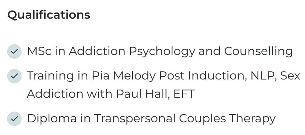 With over 20 years experience as a counsellor and a wide range of experience from established institutions like the Priory, Blenheim Project, Turning Point, and APN London. I hold an MSc in Addiction Psychology and Counselling, I’m a registered member of the British Association for Counselling & Psychotherapy and have additional training in various therapeutic modalities including Pia Melody Post Induction, NLP, Sex Addiction, EFT, and Transpersonal Couples Therapy.